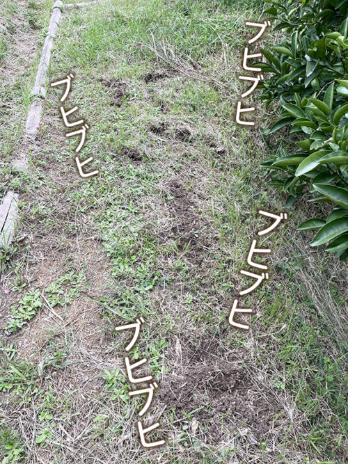 不思議と樹の根本は無傷、その周りを一所懸命ブヒブヒ言っているようです