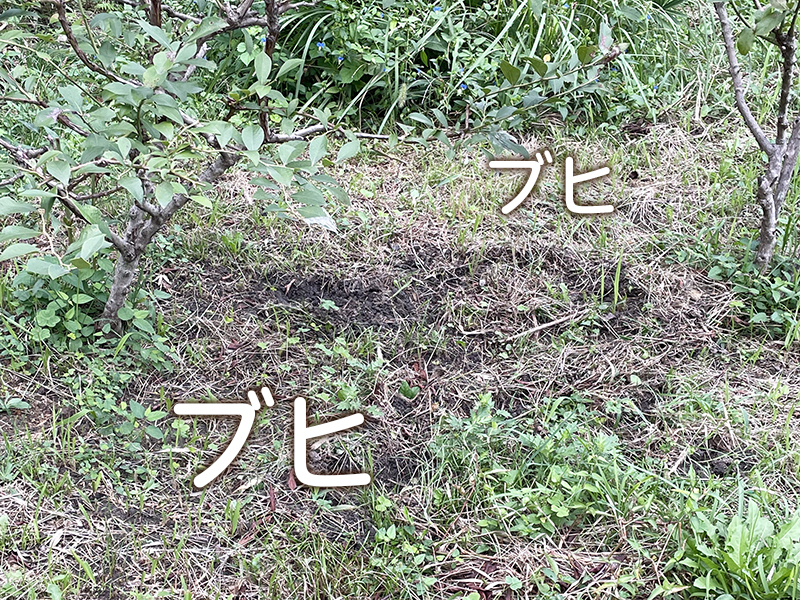 不思議と樹の根本は無傷、その周りを一所懸命ブヒブヒ言っているようです