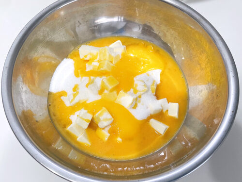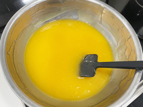 ポイントは、果汁を絞ったら濾すことと、溶いた卵を濾すこと、湯煎する時には手を止めないこと