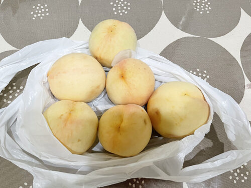 今年は白桃の当たり年なのか、そのお宅で300個近く収穫があったそうで、連絡いただきました