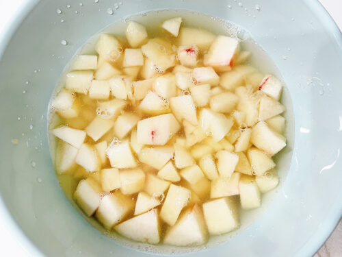 剥いて刻んだ桃を砂糖水に漬けること5~10分