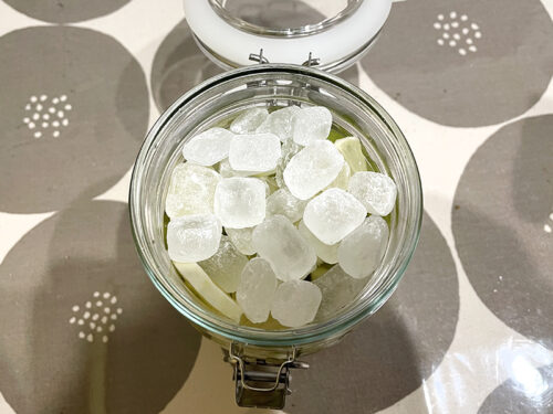 皮を剥いて、刻んで、計って、氷砂糖と交互に重ねるだけ