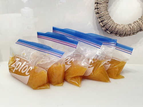 瓶の在庫が非常に乏しいので、今回は保存密封袋で冷凍保存することにしました