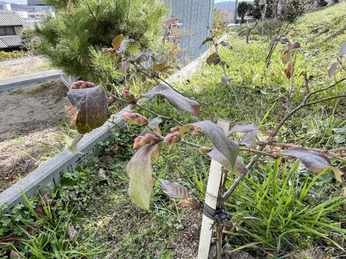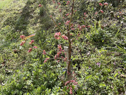一昨年植えた4本のブルーベリーたち、しっかり根付いてたくさん花芽をつけていました