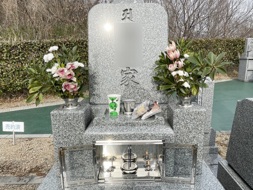 お墓には母が育てているお花と、父が植えたしきびをお供えしています