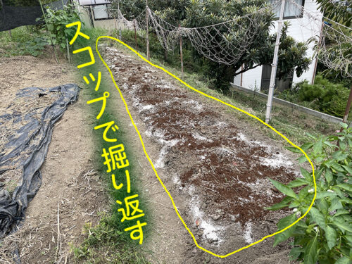 苦土石灰と牛糞を撒いてあとはよろしく・・・と
