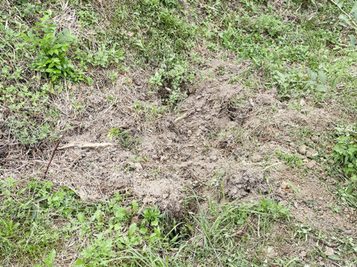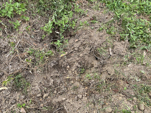 ブルーベリーの横がごっそり掘り返されとる(@_@)