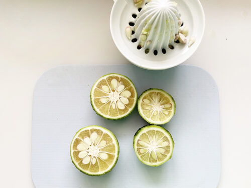 少しだけ果汁を使うので、果汁を絞って・・・