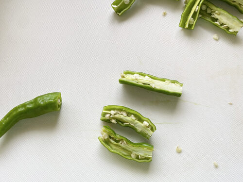 種を入れたままでも出来るけど、辛味が増すのと、舌触りが悪くなるので出来る限り取り除きます