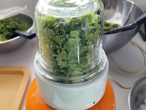 種を取り除いた青唐辛子をミキサーにかけてペースト状に