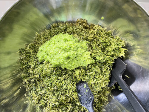ペースト状にした青唐辛子と柚子皮とお塩(青唐辛子+柚子皮の20%)を混ぜて