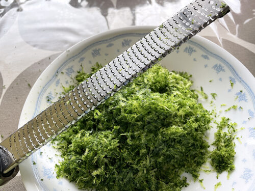 そして先日いただいてきた青柚子の皮をひたすらおろす作業