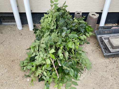 切った枝はひとまとめにして燃えるゴミの日に出します