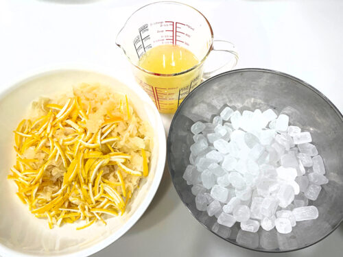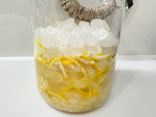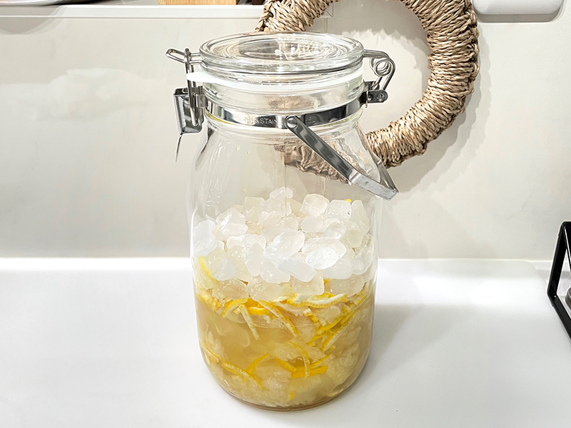 柚子の下処理が終わったら、氷砂糖と重ねて漬けるだけ